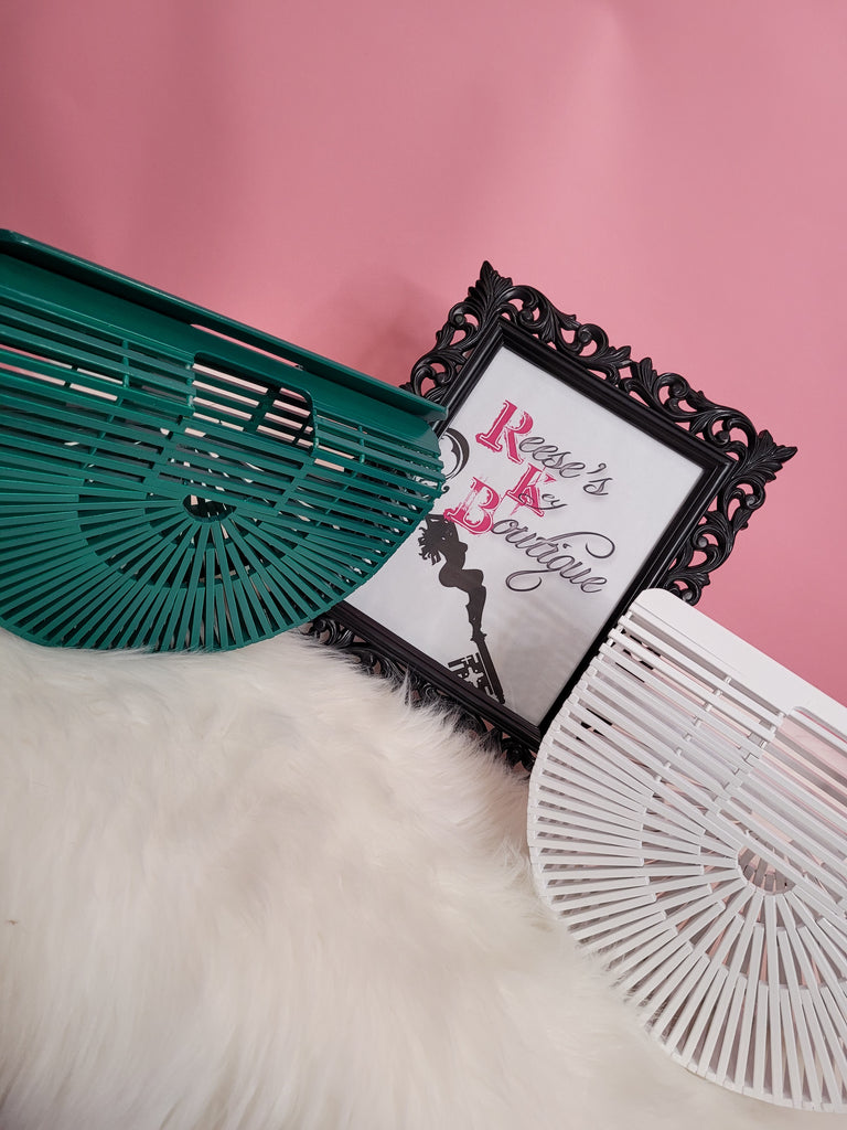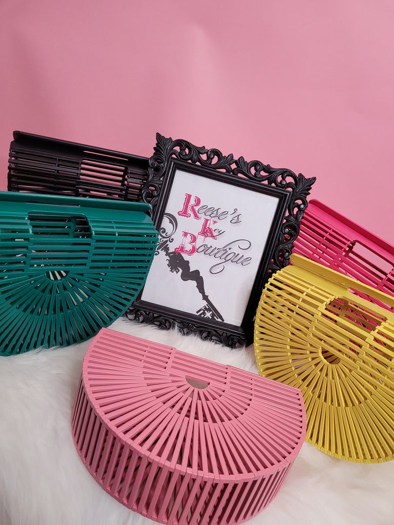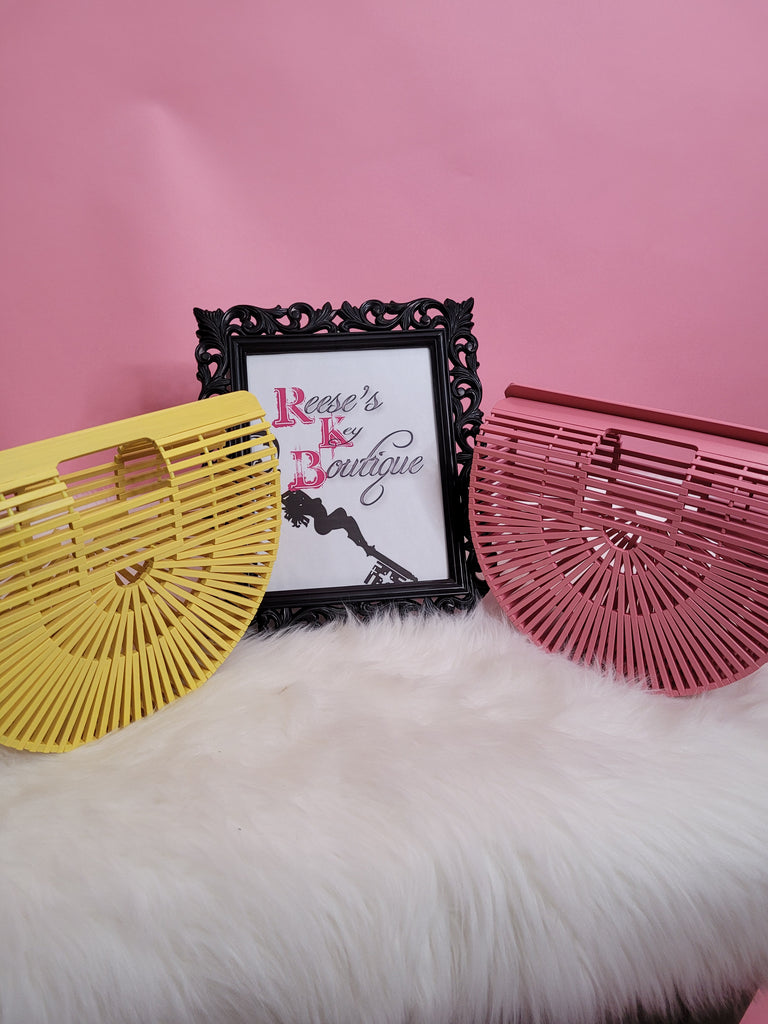 Top off any outfit with our cute Boujee bamboo clutch...wear it to the beach or in the streets!